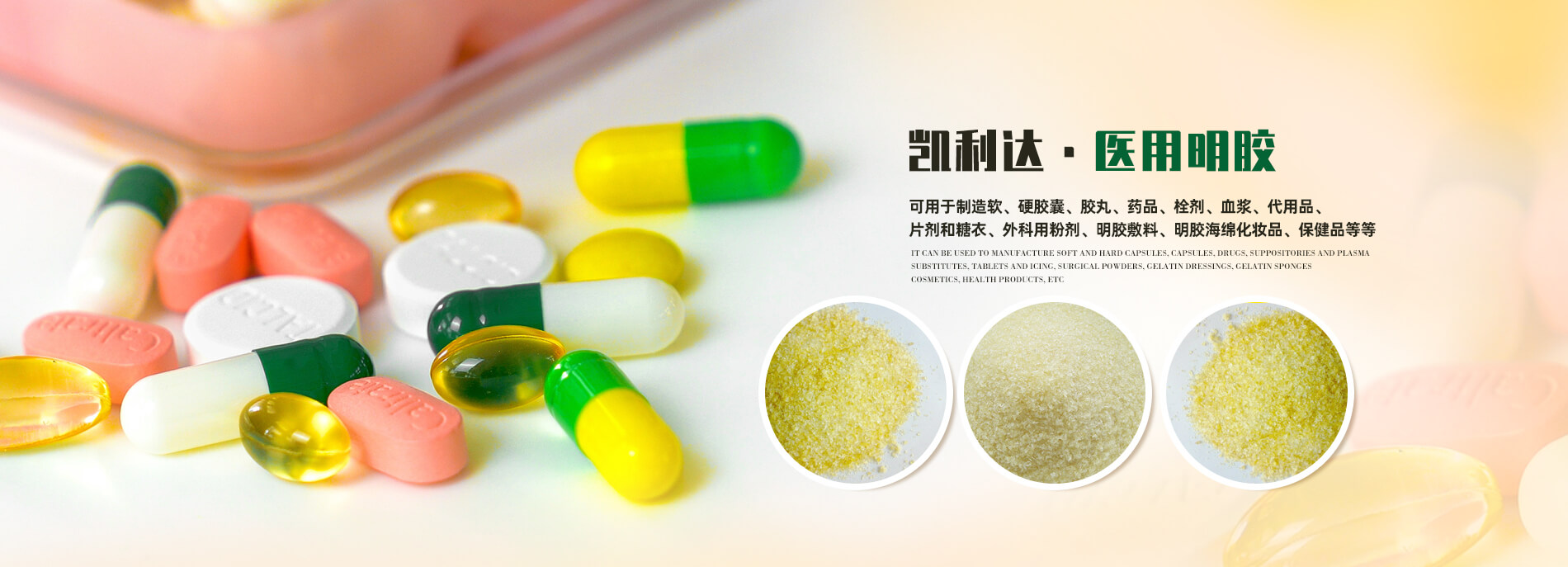 凱利達(dá)(河南)生物科技有限公司位于夏商古都偃師市高龍鎮(zhèn),緊鄰風(fēng)景秀麗的伊河河畔,這里東依鄭州、西鄰洛陽(yáng),隴海、焦枝兩大鐵路在此交匯,連霍高速公路、310、207國(guó)道縱橫東西南北。  本公司成立于2001年,注冊(cè)資金1100萬(wàn)元,采用國(guó)內(nèi)先進(jìn)的生產(chǎn)工藝和符合藥品生產(chǎn)GMP要求的現(xiàn)代化生產(chǎn)設(shè)備,精選優(yōu)質(zhì)牛骨,主要生產(chǎn)藥用(輔料)膠囊用明膠、食用明膠、照相明膠,年產(chǎn)各種明膠3000噸。公司占地面積2